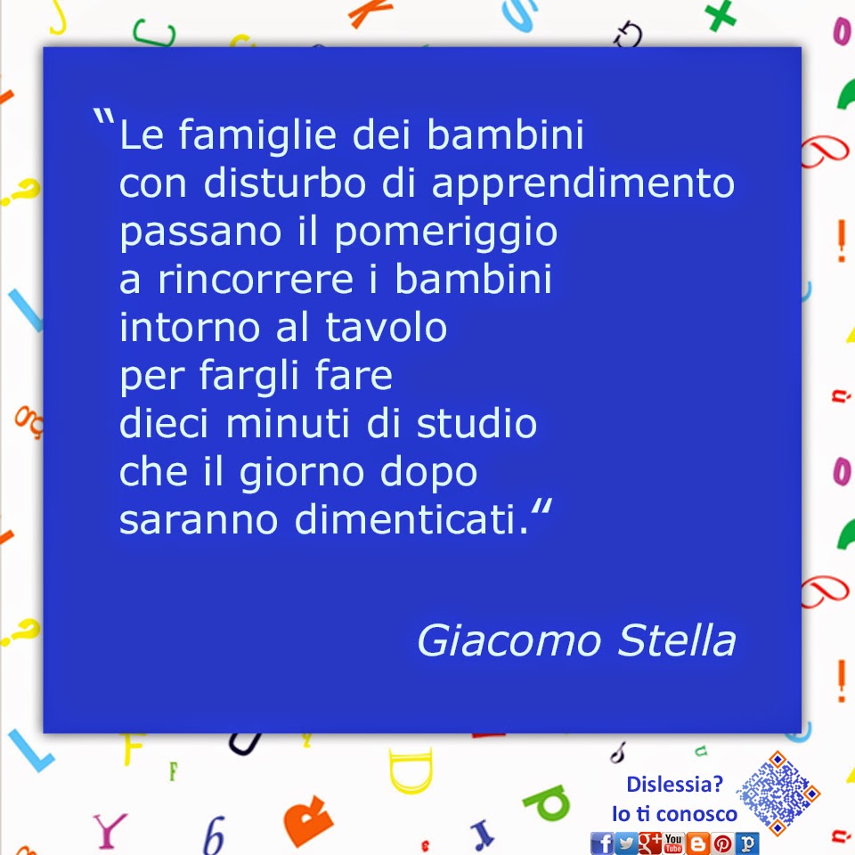 "Le famiglie dei bambini con disturbo di apprendimento passano il pomeriggio a rincorrere i bambini intorno al tavolo per fargli fare dieci minuti di studio che il giorno dopo saranno dimenticati." Giacomo Stella